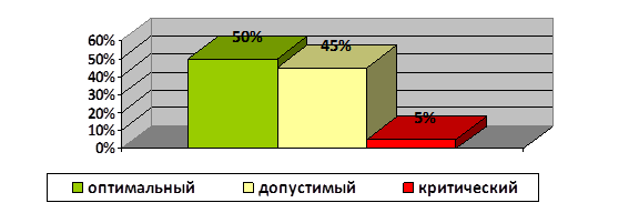 Анализ результатов показал, что на высоком уровне 10 учащихся, что составило 50%, на среднем – 9 учащихся, что составило 45% и 1 ученик – на низком уровне – 5%.