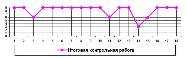 Анализ работ дал следующие результаты: 1 человек остался на низком уровне, 3 человека – на среднем и 14 человек – на высшем. Наглядно это можно увидеть на графике: