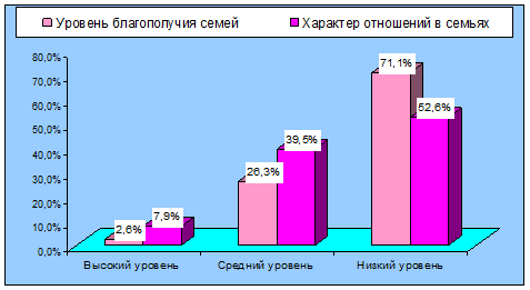 Рис. 6 – Взаимосвязь уровня благополучия семей и характера отношений в семье