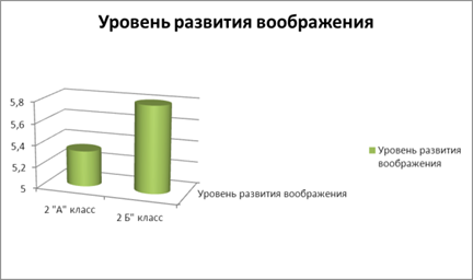 Проанализировав Таблицу №7, Таблицу №8 и Таблицу №9, мы можем видеть что на этапе констатации в экспериментальном 2 «А» классе коэффициент уровня развития воображения равен 5,33, а в контрольном 2 «Б» классе коэффициент уровня развития воображения равен 5,80, что говорит нам о том, что уровень развития воображения на этапе констатации в экспериментальном и контрольном классах примерно равны.