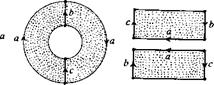 Решение: На рисунке показано, как можно представить проективную плоскость с вырезанным диском. Сделаем разрезы b и c. Затем склеим стрелки а. В результате получим лист Мёбиуса [26].