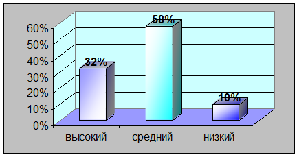 Как видно из рисунка, высокие показатели имеют 32% старшеклассников, средние – 58%, низкие – 10%. Важным условием умения принимать решение является автономность и самостоятельность человека, когда он принимает на себя ответственность за решение и его последствия, когда он в состоянии самостоятельно выдвигать и оценивать альтернативу. Данная выборка в основном показала средний уровень по готовности принять решение, что может впоследствии оказать негативное влияние на выбор профессии.