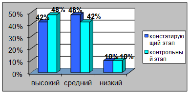 Сравнивая показатели уровня развития автономности старшеклассников, полученные на констатирующем этапе, с результатами на контрольном этапе, можно сделать следующие выводы: с низким уровнем развития автономности осталось столько же старшеклассников; количество старшеклассников с высоким уровнем развития автономности увеличилось на 48%; со средним уровнем развития автономности уменьшилось на 42%.