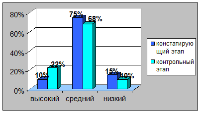 Сравнивая показатели уровня информированности старшеклассников, полученные на констатирующем этапе, с результатами на контрольном этапе, можно отметить следующие изменения: количество старшеклассников с высоким уровнем информированности увеличилось на 22%; со средним уровнем информированности количество их уменьшилось на 68%; а с низким уровнем – уменьшилось на 10%.