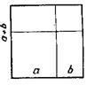 Площадь квадрата, построенного на сумме отрезков а и b, равна сумме площадей двух квадратов со сторонами а и b и площадей двух прямоугольников со сторонами а и b. В IX в. н. э. узбекский