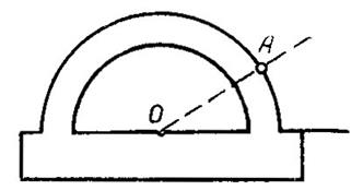 Транспортир. Характерной операцией для транспортира является построение точки, лежащей на луче, проходящем через данную на прямой точку и образующем заданный угол с этой прямой (рис. 9).