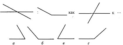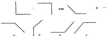 Вам предлагаются три геометрических объекта. Между первым и вторым объектом существует определенная связь. Между третьим и одним из четырех объектов, предлагаемых на выбор, существует аналогичная, та же самая связь. Этот геометрический объект вам следует найти и написать на листке бумаги соответствующую ему букву.